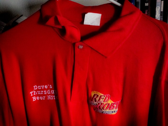 During my time at a company in the late ’90s, my close friend and colleague and I initiated a recurring event known as “Dave’s Thursday Beer Night.” We even established a website dedicated to it. Every Thursday after work, we would gather at the nearby burger restaurant, Red Robin, as it conveniently had a bar. The event gained considerable popularity, to the extent that the manager of Red Robin even created “Dave’s Thursday Beer Night” polo shirts featuring both our event name and the Red Robin logo. However, over time, the enthusiasm for “Dave’s Thursday Beer Night” gradually waned but I still have my shirt!