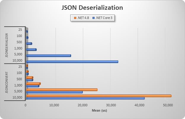 As you can see, using the new JsonSerializer is the clear winner on performance when deserializing JSON!