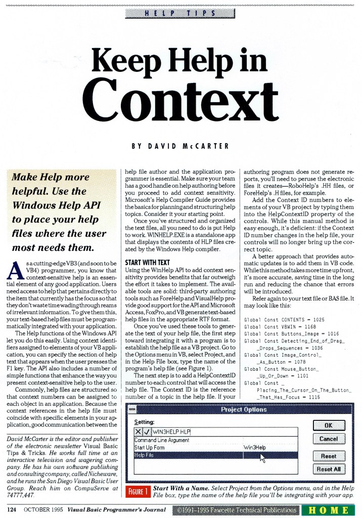 The first article I wrote for this magazine was about the significance of Windows help files titled “Keeping Help In Context.” It emphasized the importance of comprehensive help documentation for applications and provided guidance on linking the F1 key to relevant help pages within the file. Even back in 1995, I recognized the value of good documentation, especially for the benefit of users.