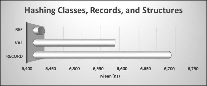 The chart below displays the time required to hash reference types, value types, and record types.