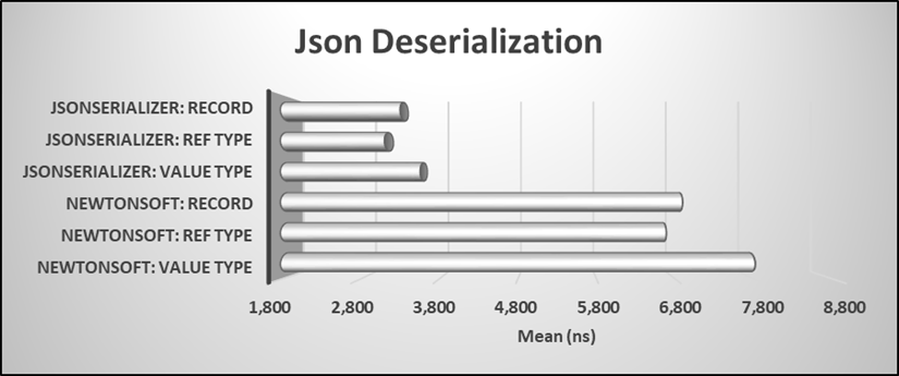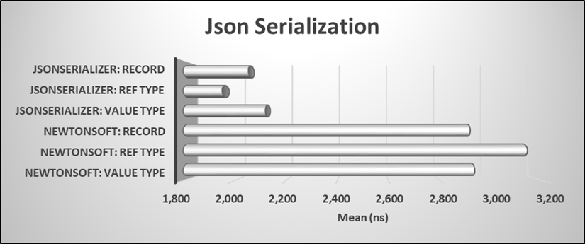 Serialization and deserialization of types to JSON is common, especially in API endpoints. Below are the results for this process.