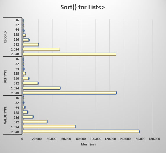 Sorting a list of record types is slightly faster than reference types and faster than value types.