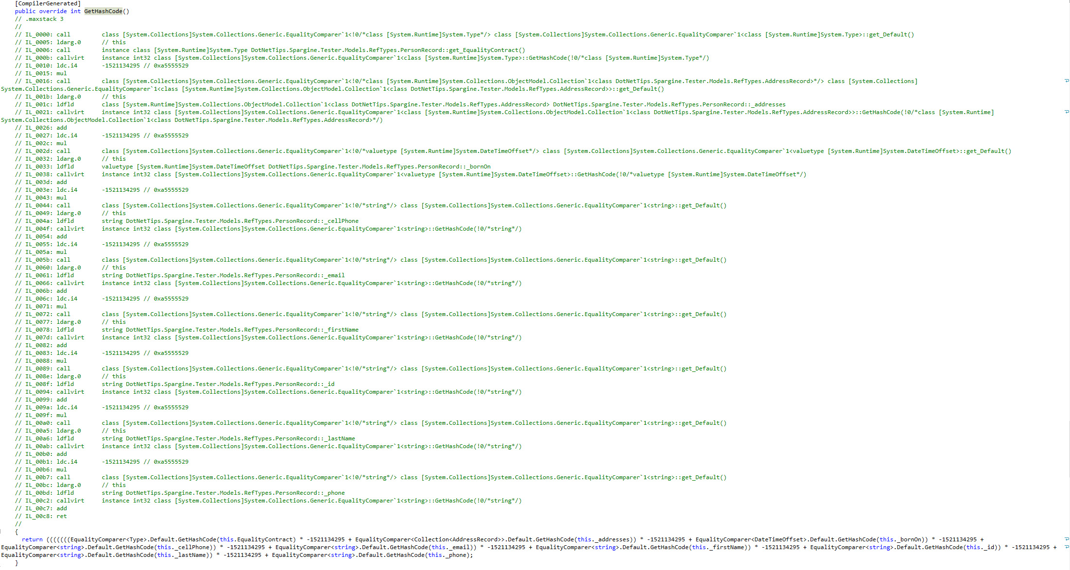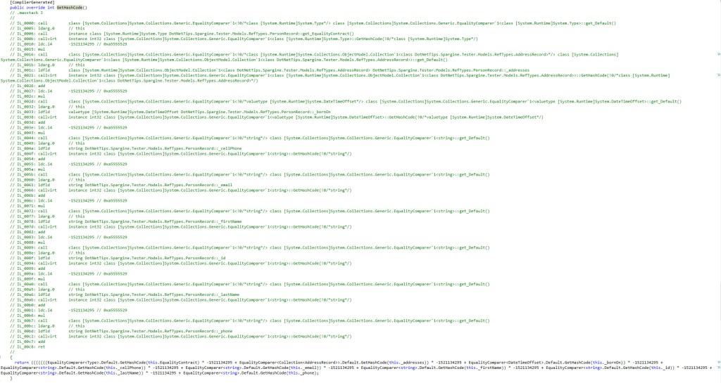With record types, there’s no need to override the GetHashCode() method; it’s generated by the compiler. This alleviates maintenance concerns.