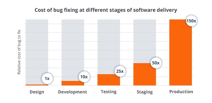 As depicted, identifying issues during the feature and design stages incurs minimal costs. By the time coding commences, the cost is already magnified by 10X, and if issues emerge in production, the cost skyrockets to a staggering 150X or more. Given that managers prioritize costs significantly more than developers do, I often advise attendees of my conference sessions, where I present this chart, to print it out and affix it to their managers’ office doors!