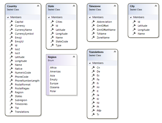 This assembly holds data for all countries in the world along with its state and city data. If you need to use this information, simply call: