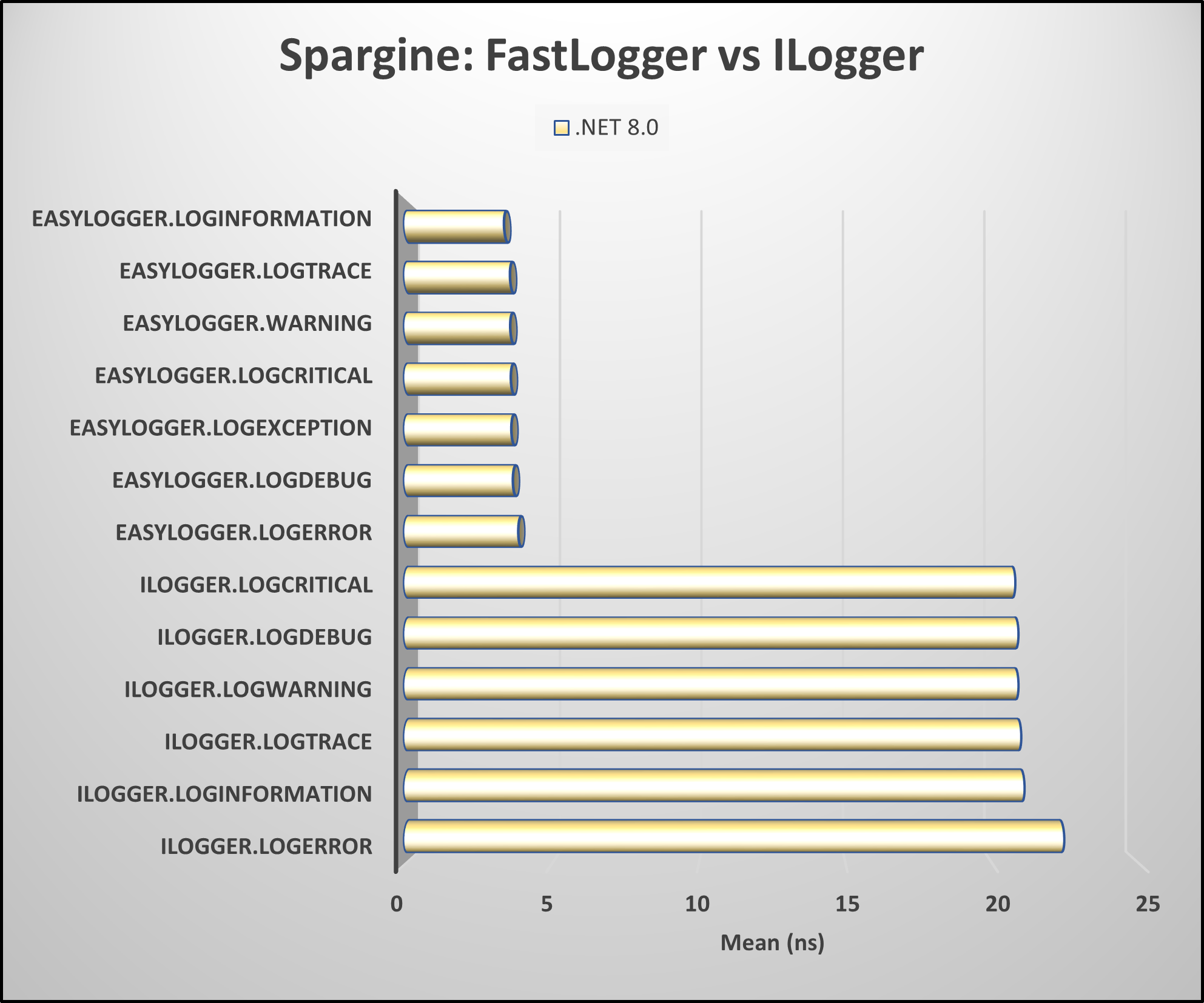 As demonstrated, across the board, the use of FastLogger proves to be more than 5 times more performant!
