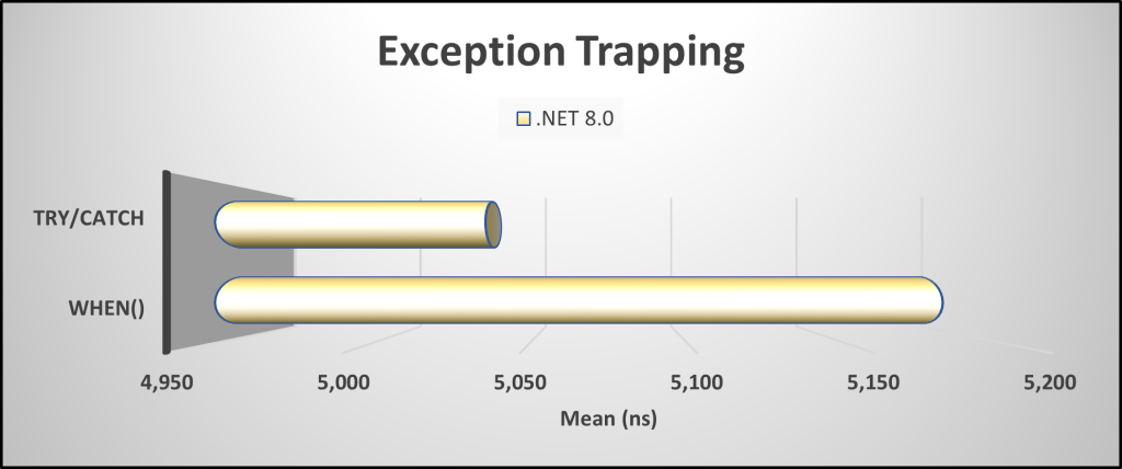 While delivering my presentation for the Rock Your Code: Code and App Performance for Microsoft .NET session at the Silicon Valley Code Camp (recognized as the largest community-run conference globally), an attendee posed an intriguing question regarding the performance implications of using the When() clause when catching exceptions. Captivated by the inquiry, I performed performance testing to offer an insightful response.