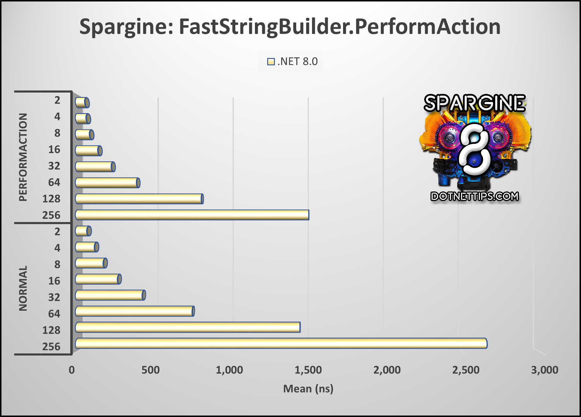 Some time ago, I introduced a method in Spargine named PerformAction() designed to enhance the efficiency of processing data within collections. Subsequently, I integrated this method into FastStringBuilder with the aim of optimizing the speed of processing strings.