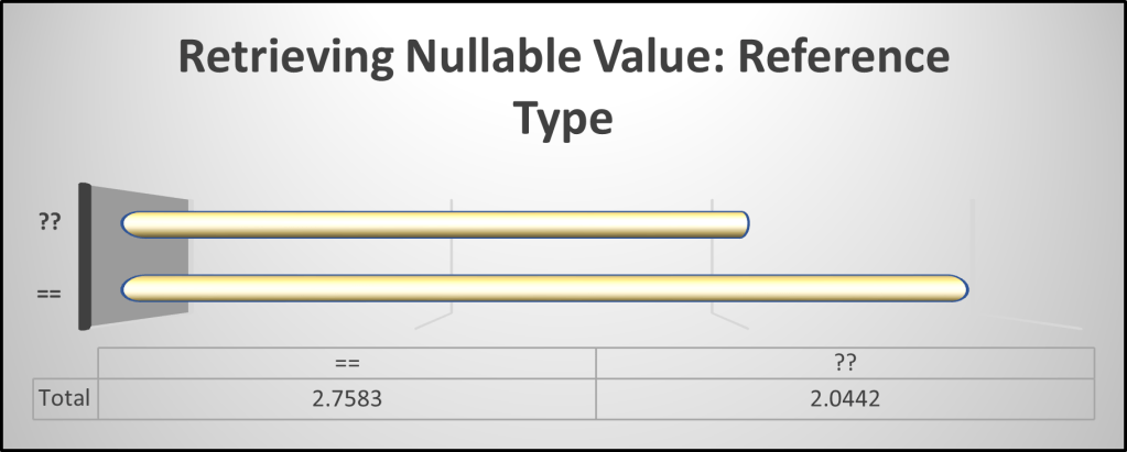 To assess performance, the null coalesce approach (Example 2) is found to be 1.12 times more efficient compared to the ternary conditional expression (Example 1).