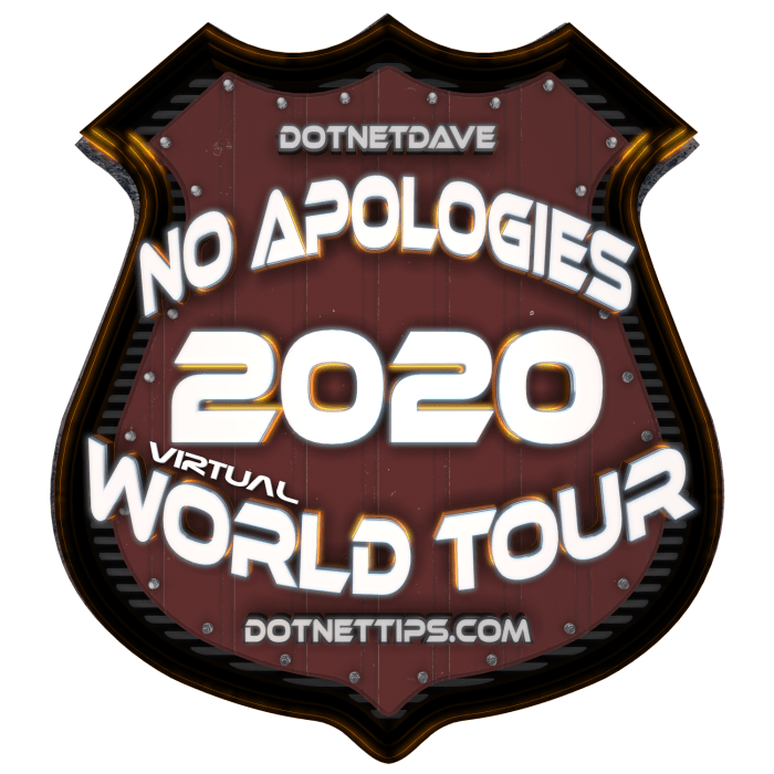 The first, live and in person, stop on the dotNetDave No Apologies World Tour will be at the San Diego .NET User Group on July 7th at 5:30 pm. I hope you will join me at this meeting. I will have lots of swag (including some of my books) to give-a-way during my session. I'm … Continue reading dotNetDave Rocks The San Diego .NET User Group: Learn How To Build a Cloud App!