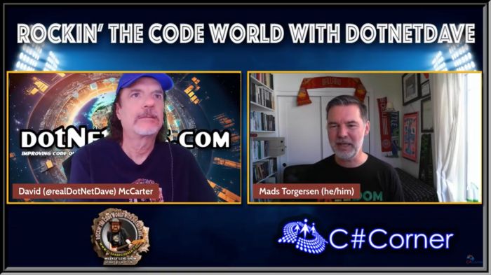 Join the 4th season premiere of C# Corner TV with host, David McCarter, on October 7th, 2023, at 10:00 PST. The special guest is Mads Torgersen, Principal Architect on the Microsoft .NET team and lead designer of the C# language. The episode will feature a discussion about .NET 8, a Q&A, and links for further resources.
