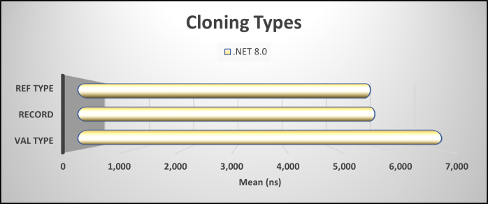 The post discusses the process of cloning different types of objects, with Microsoft recommending the use of JSON serialization for this purpose. The author explores the performance differences in cloning reference types, value types, and record types. Benchmark results using JsonSerializer reveal that cloning reference types is 1.015 times faster than cloning record types and 1.24 times more performant than cloning value types. The findings are shared for reference.