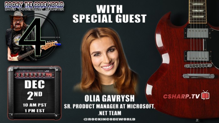 On December 2nd, 2023, C# Corner TV will host show #92, featuring guest Olia Gavrysh, a Senior Product Manager from Microsoft .NET team. Gavrysh will discuss modernizing .NET applications, strategies for migrating to Azure, and her experiences in the .NET space. The show will also feature additional segments, including a philanthropic initiative to assist slum orphans in Delhi, India.