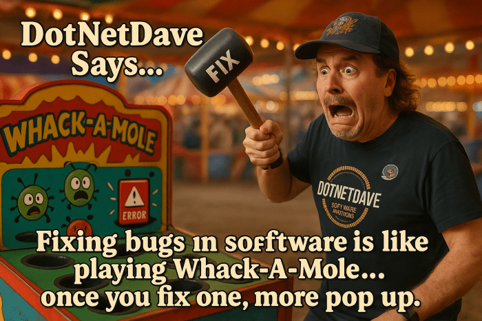 dotNetDave Says… Fixing Bugs Is Like Playing the Game Whack-A-Mole!