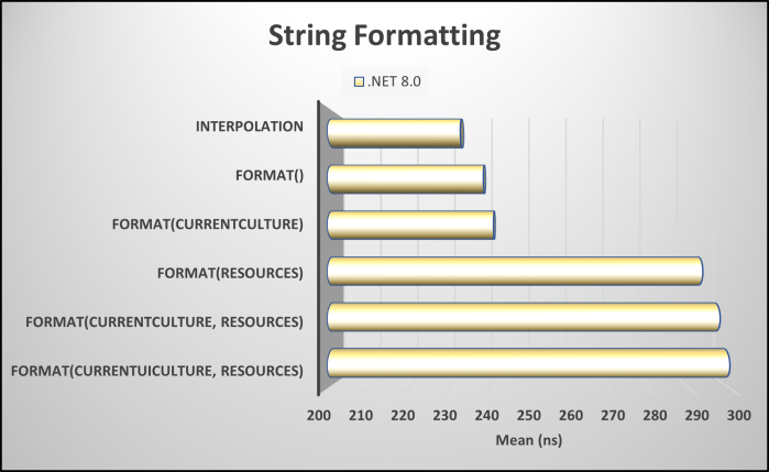 This article discusses the performance differences using string.Format() and interpolation and stresses the importance of using globalization with any string shown to the user. Updated January 2023.